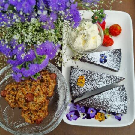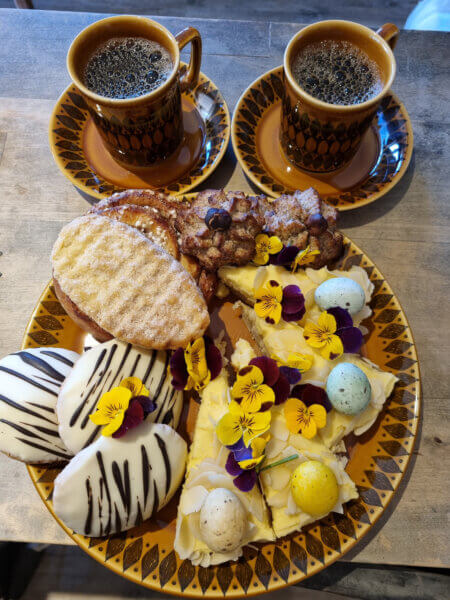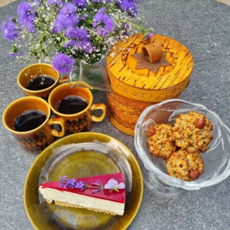 Stig in och låt dofterna från våra hembakade kakor, våfflor, pajer och mackor omfamna dig. Varje smak är en kärleksfull komposition av färska ingredienser och omsorgsfullt utvalda recept som för tankarna till långa sommardagar och varma höstkvällar.